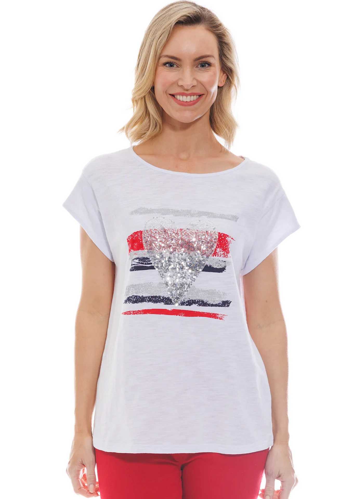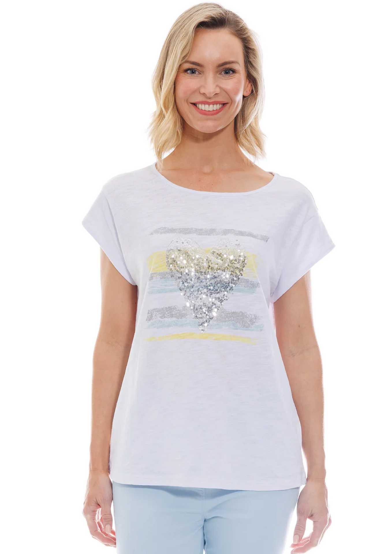 The Cafe Latte SEQUIN  PRINT Top (CLM435) HAS A PRINT FRONT.