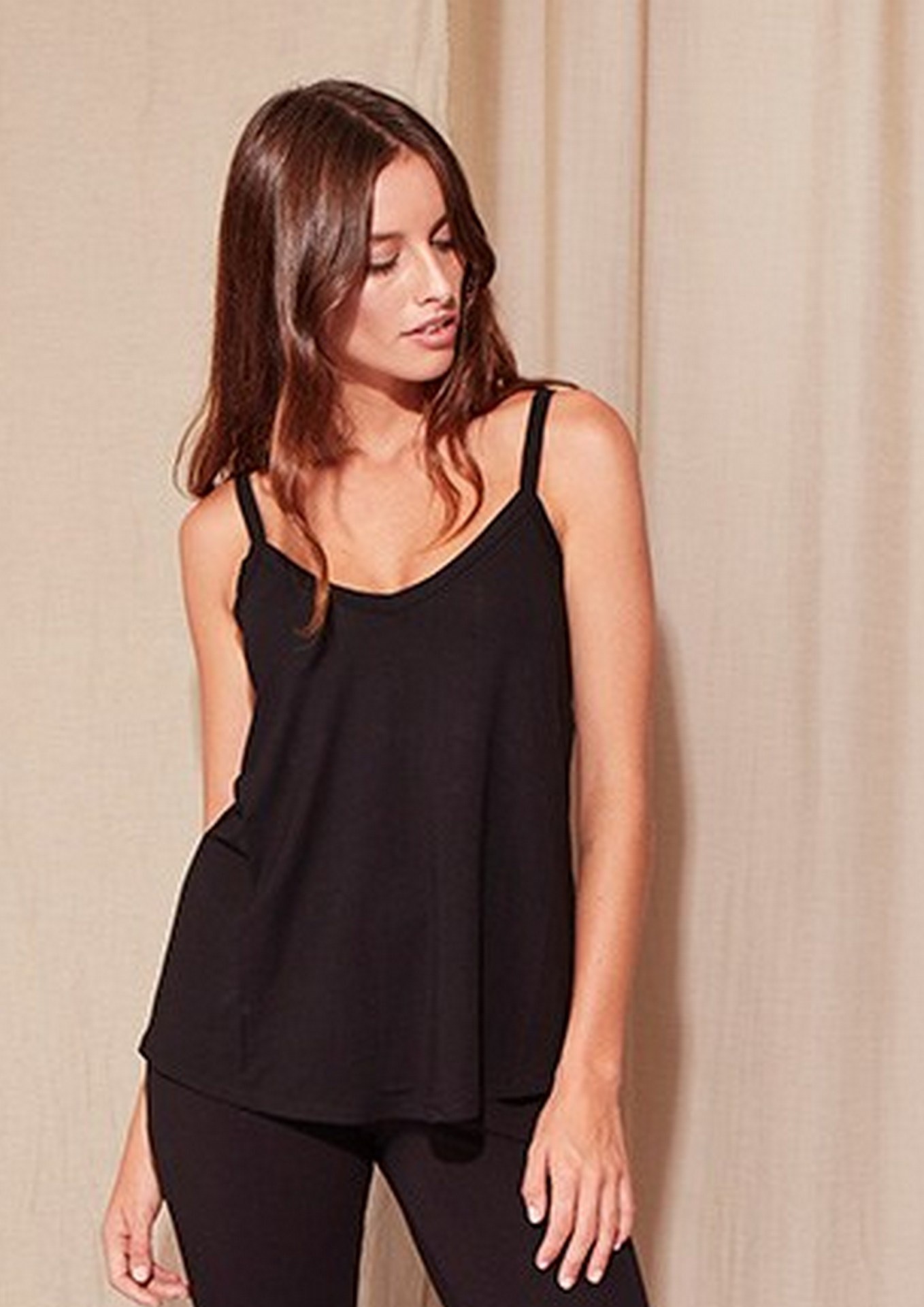 The Lou Lou Adjustable strap Bamboo Cami top is a great wardrobe piece for many occasions. It has a v-neck front and straight back.