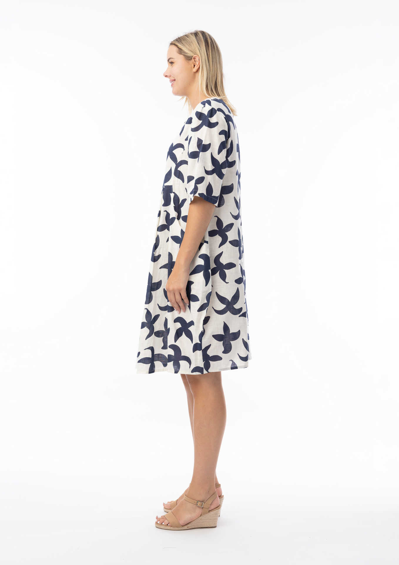 ORIENTIQUE Cotton Elbow Sleeve Dress in NAZCA Print (#40195)