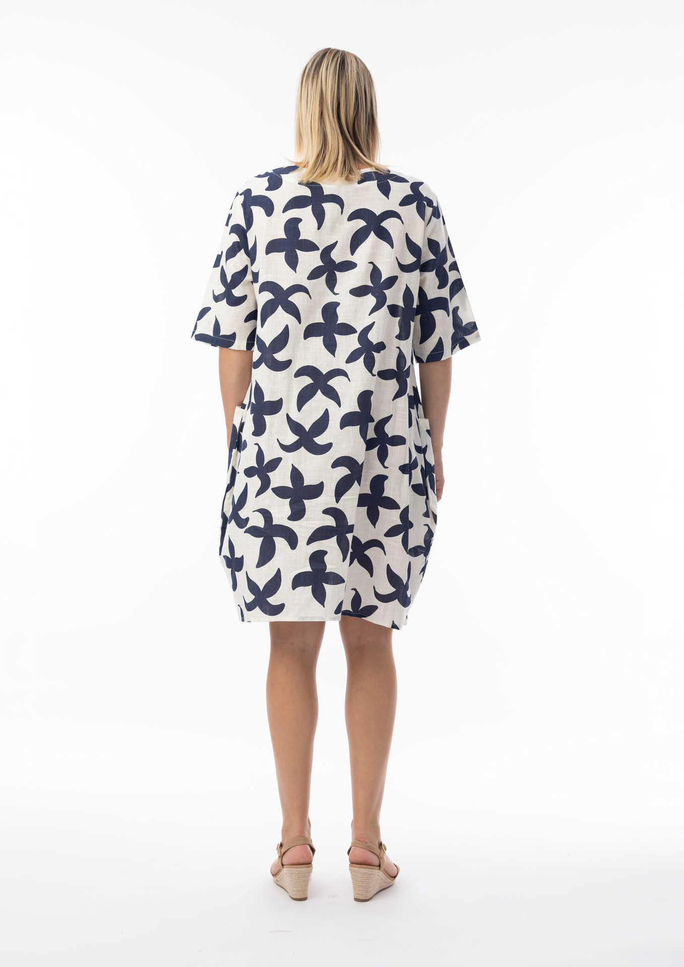 Introducing Orientique's Nazca Knee-Length Dress (#40195), designed for sun-soaked days and effortless elegance. Inspired by the ancient patterns of the Nazca culture, this dress features striking prints that bring history and artistry into modern style. A flattering round neckline and 3/4 sleeves offer a timeless silhouette, while the breathable 100% organic cotton ensures all-day comfort. Perfect for transitioning from day to night, this standout piece brings meaning and beauty to every step of your summer wardrobe.