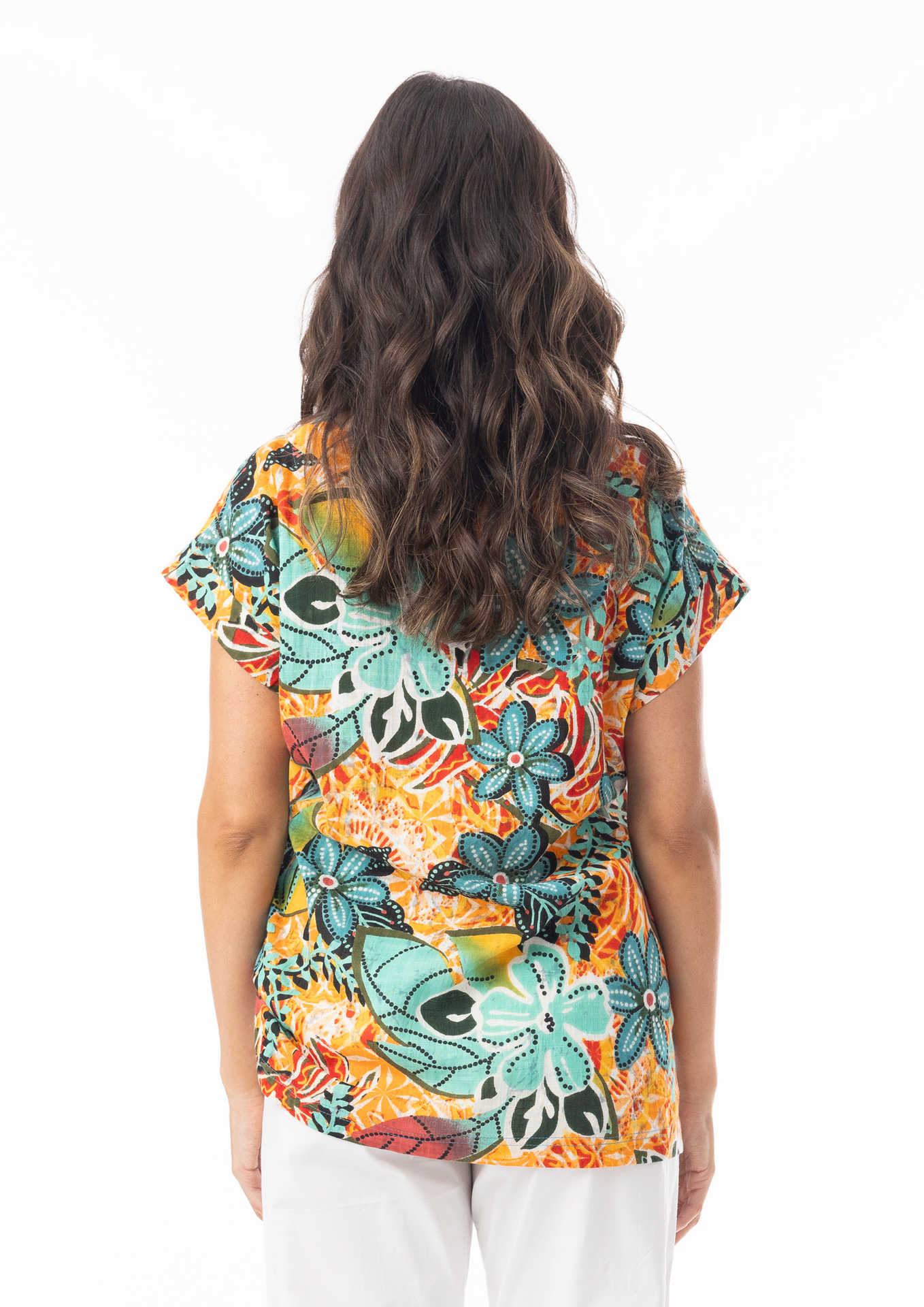 Make a statement this summer with our  GUARATIBA Print Rolled Neck Top (#62757). With a flattering round neckline, gorgeous colourful print, and chic short sleeves, it's the perfect blend of style and comfort. Elevate your summer wardrobe with this gorgeous piece!