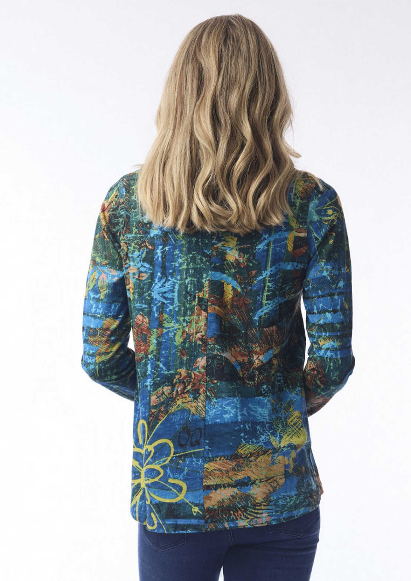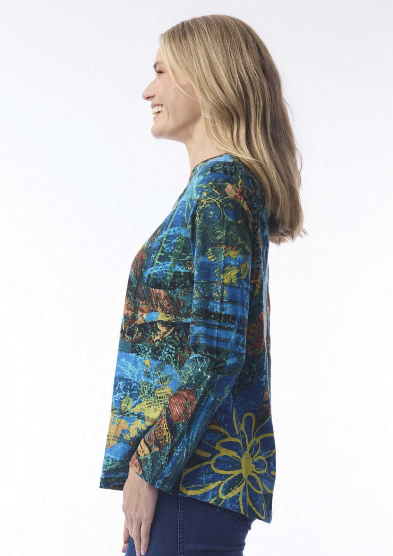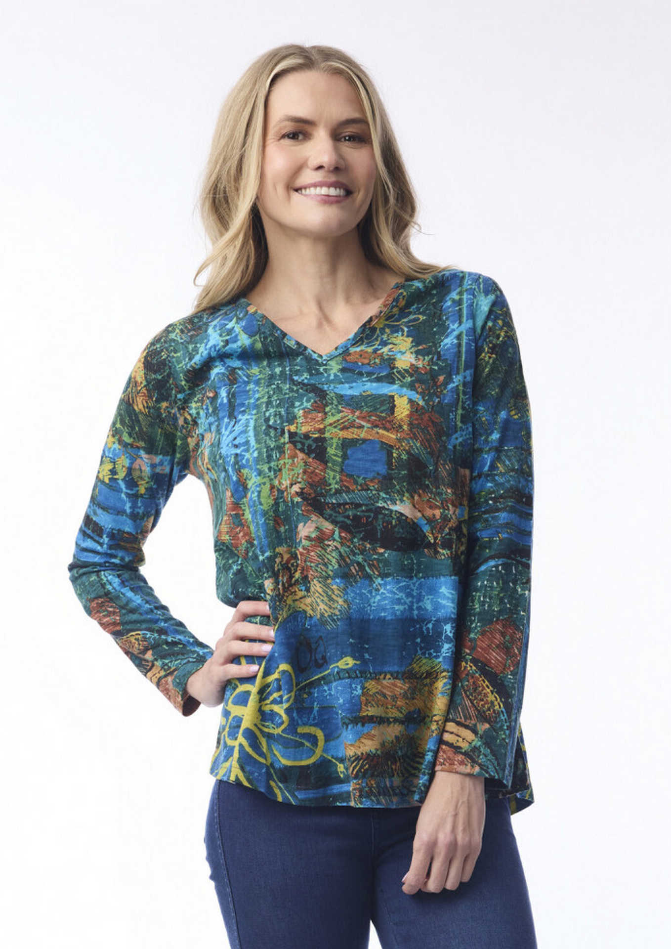 ORIENTIQUE LONG SLEEVE V-NECK PRINT TEE IN BATIK FLORAL (#23142)