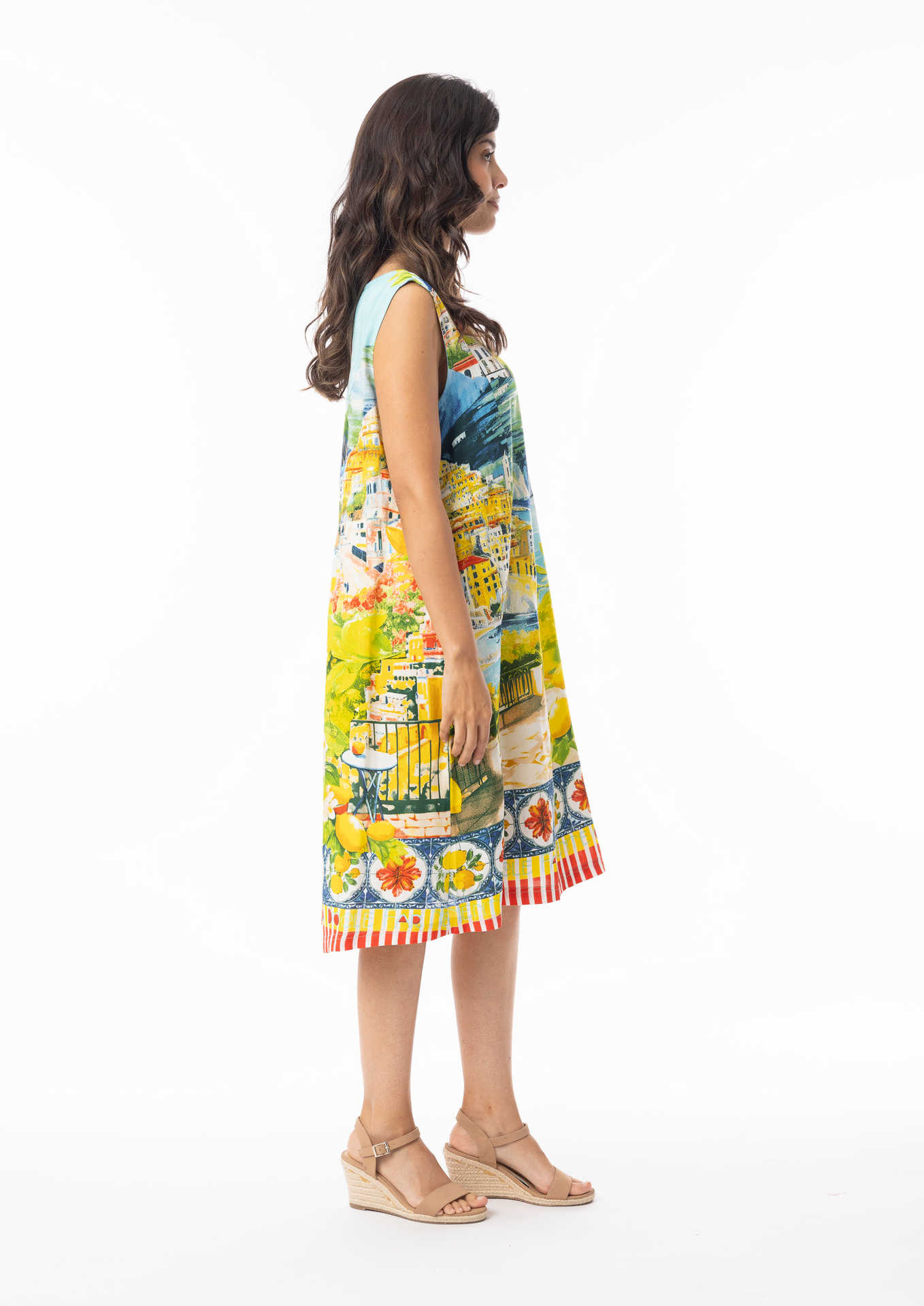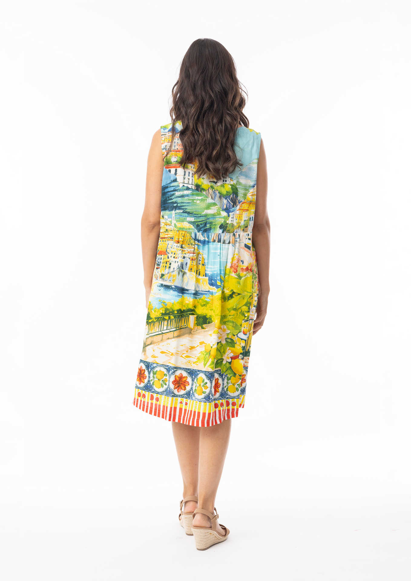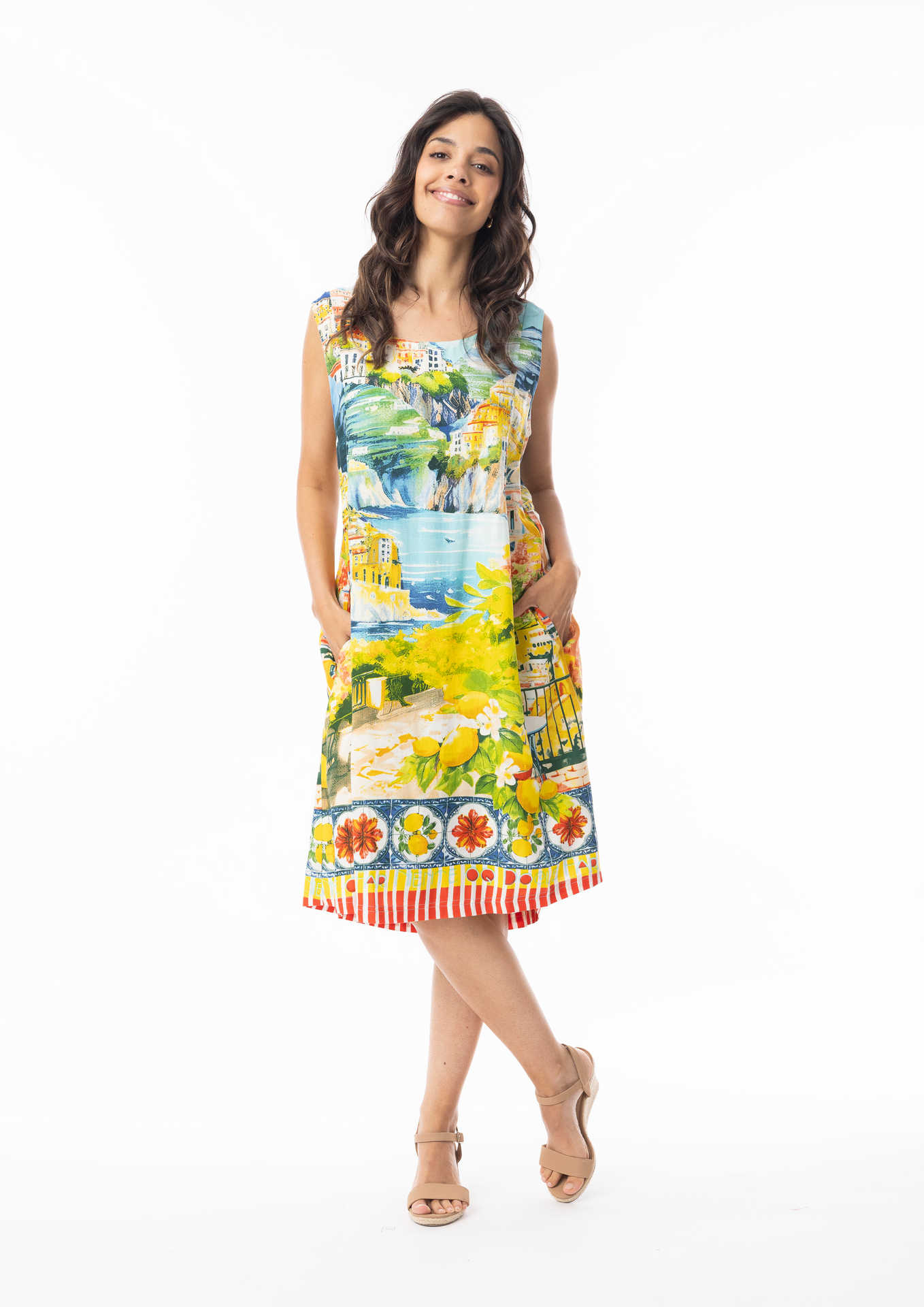Elevate your wardrobe with the effortlessly chic Amalfi shift dress. Featuring a classic crew neck and sleeveless design, this breezy silhouette is perfect for warm, sunny days. Bold prints and a relaxed fit come together for a look that's both vibrant and easygoing—ideal for everything from beach strolls to weekend brunch.