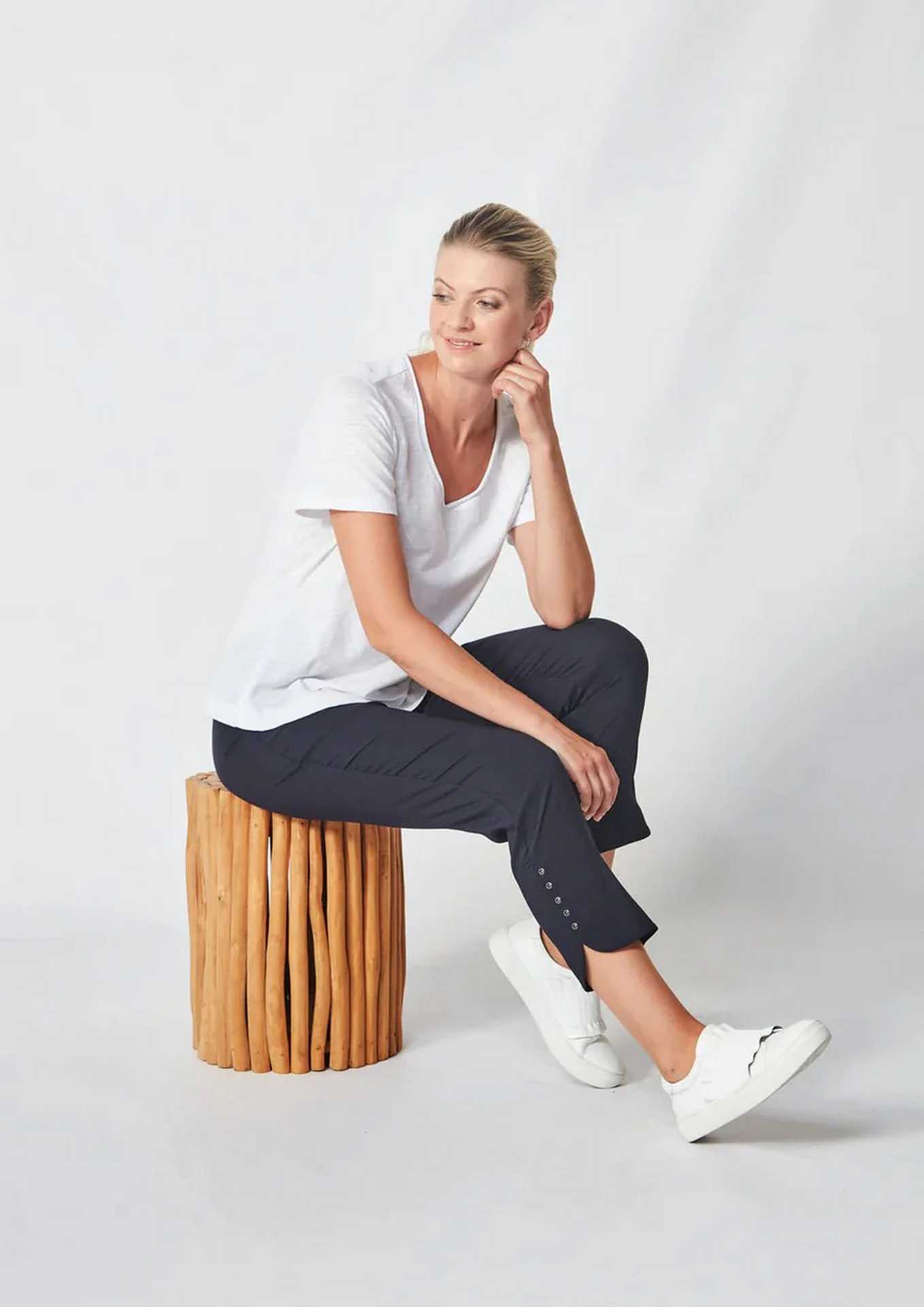 The Verge Acrobat 7/8 Rivet Detail Pant (#9322)  is a versatile, very lightweight pant available in BLACK