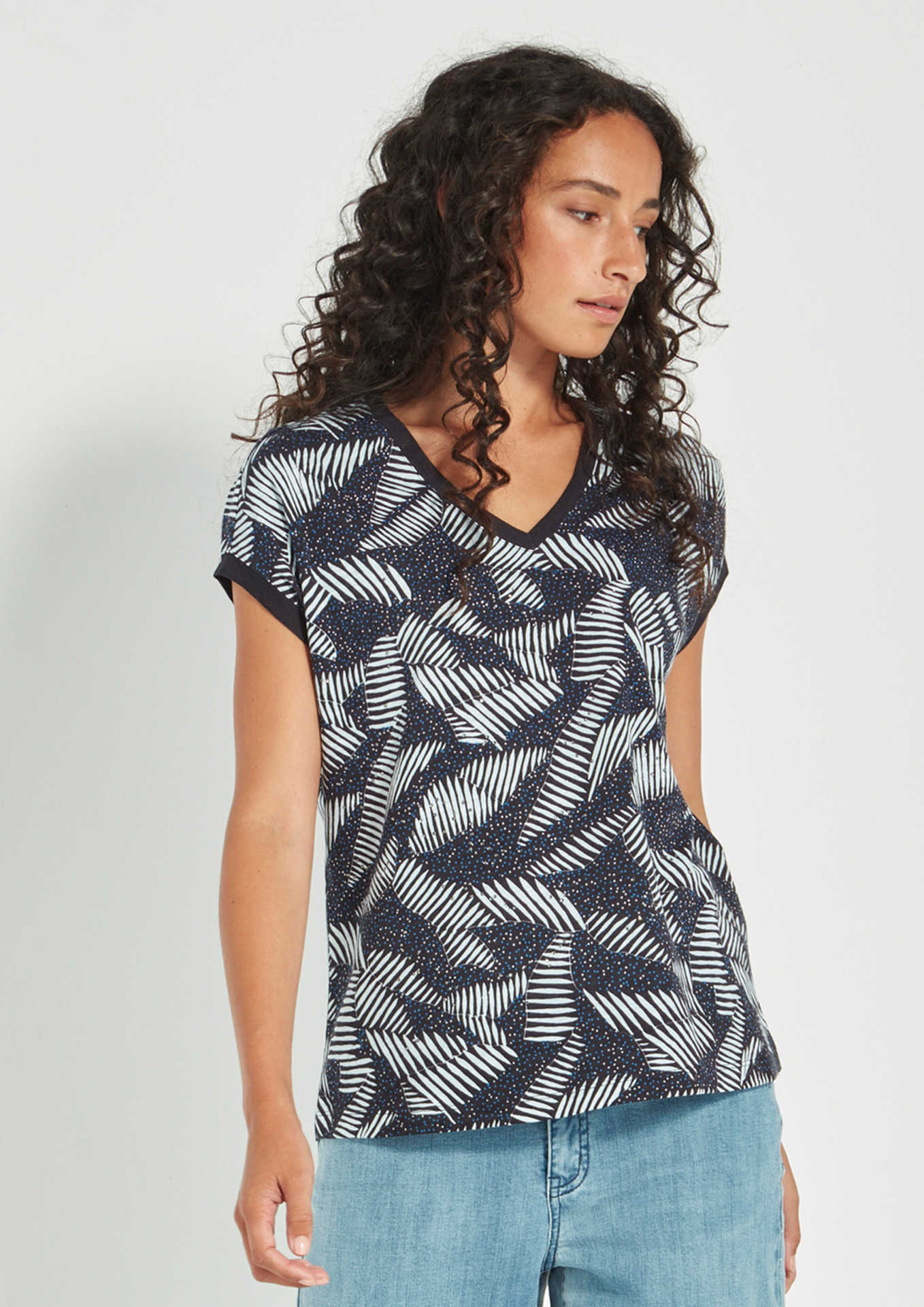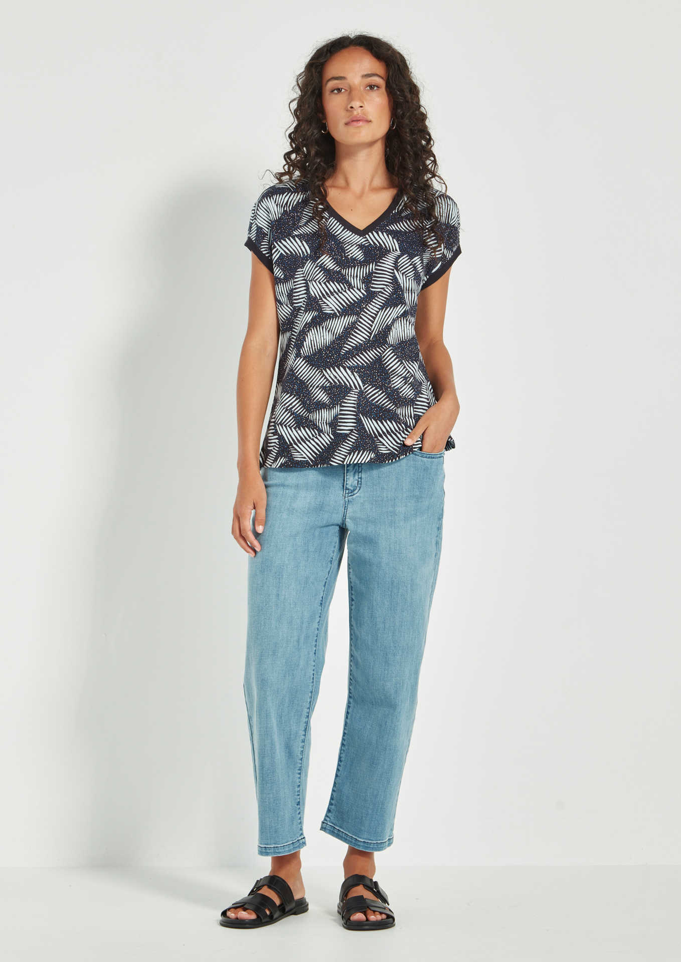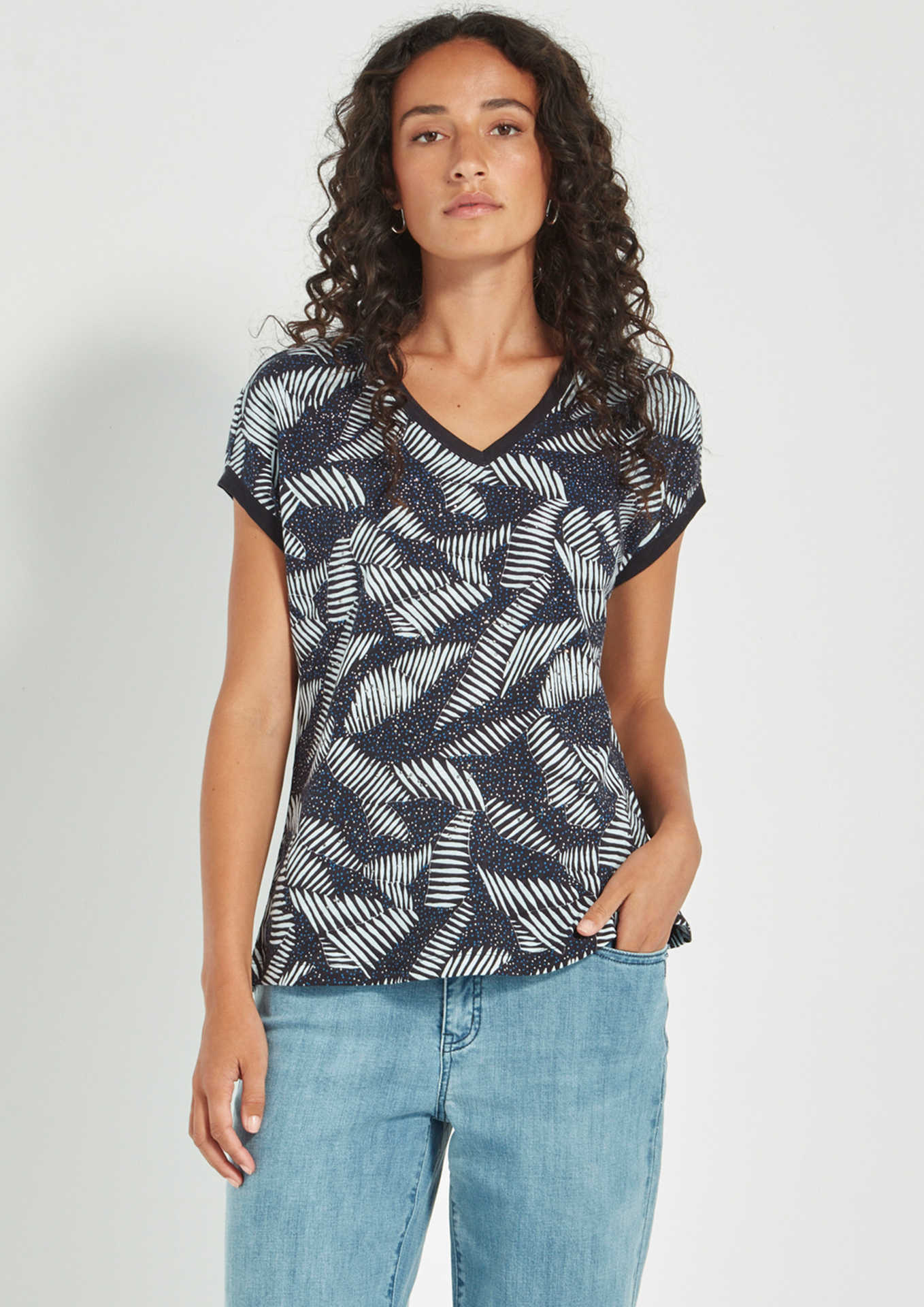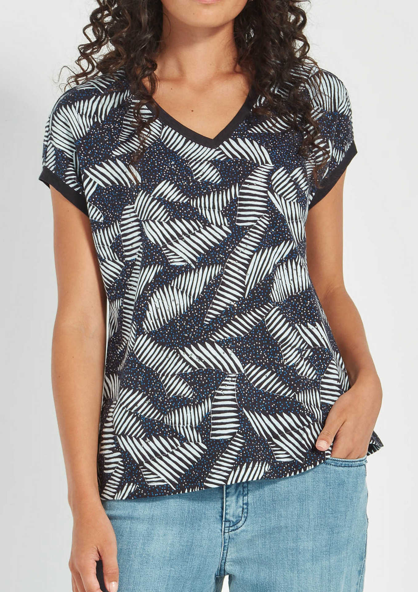 Modern and fresh, the VERGE Suki Top (#9861) showcases an original Verge print and pairs effortlessly with denim, white, or ink-toned pants.